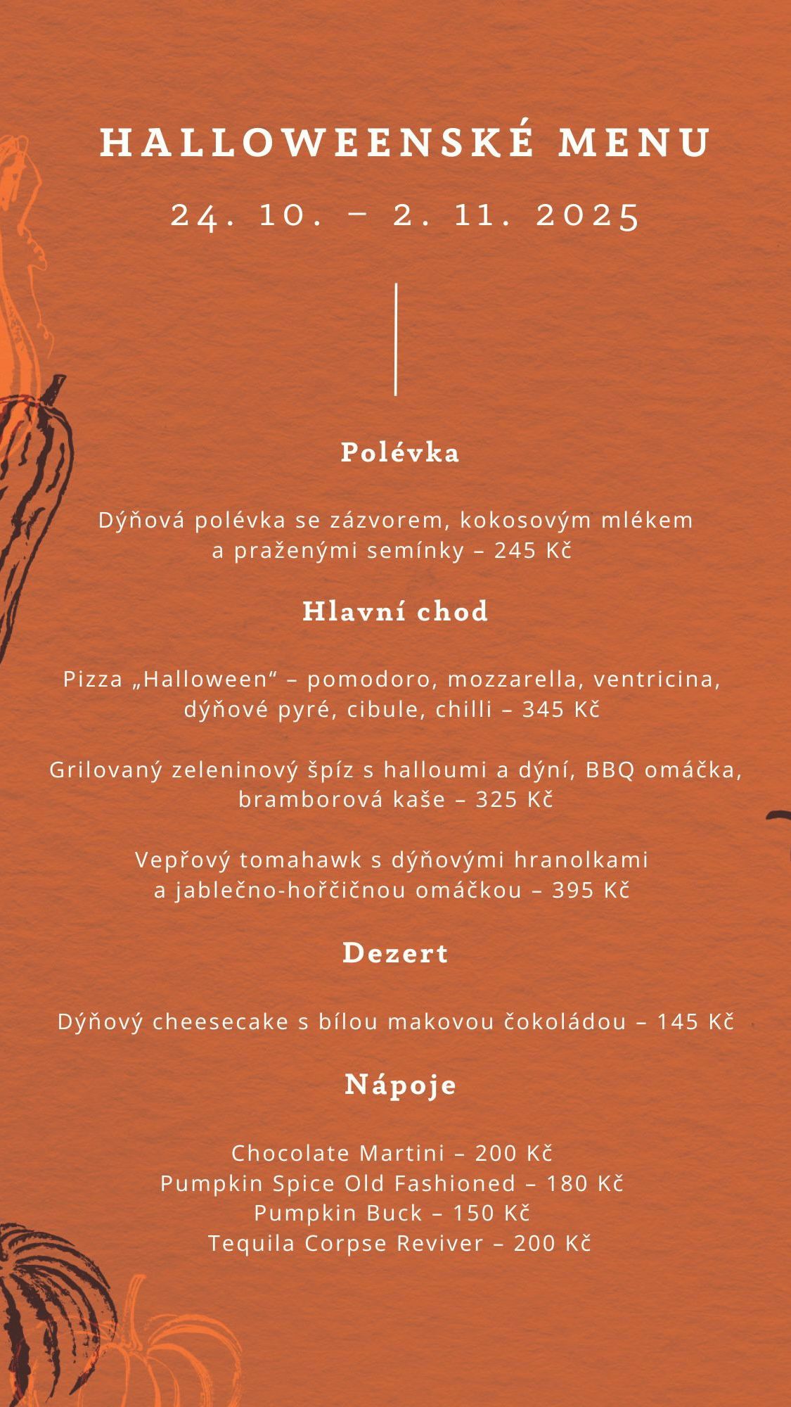 Podáváme od pátku 24. října do neděle 2. listopadu – těšíme se na vás!